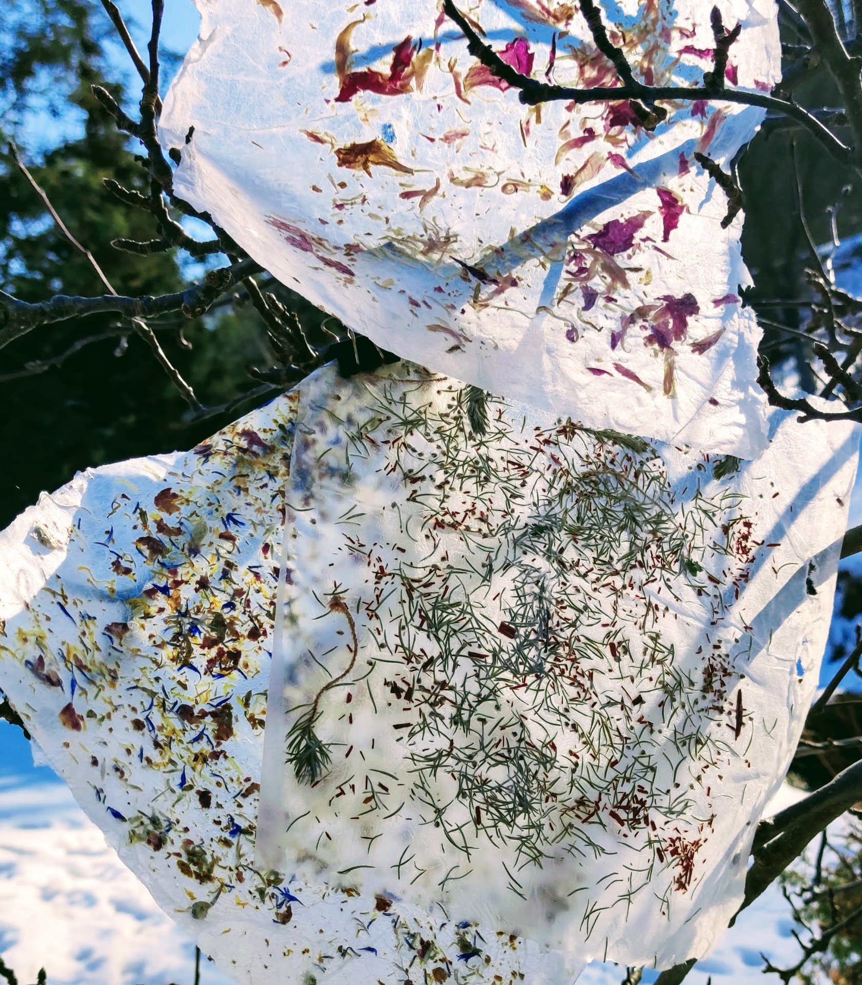 Zamilovala jsem se do výroby průhledného ručního papíru s bylinkami. Vyrábím archy ručního papíru k vašemu dalšímu tvoření pro scrap booking, výrobu prostírání, podtácků, obalů na cokoliv, ozdobných víček na zavařovací lahve, taštiček, obálek ... Dá se použít jako luxusní balící papír na dárky nebo květiny. Je tenký, ale dostatečně pružný a pevný. No, chová se trošku jako folie - pro vaši představu. Květiny jsou v tomhle papíru jako živé - světlo je nevyšisuje, tak, jak se to děje u klasicky vyráběného ručního papíru. Aktuální nabídku k prodeji najdete ZDE